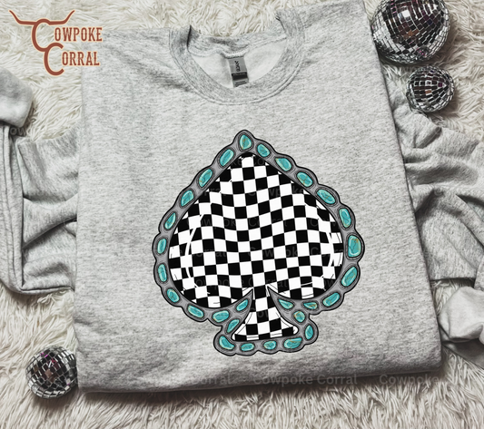 CHECKERED SPADE (B&W) CREWNECK SWEATSHIRT