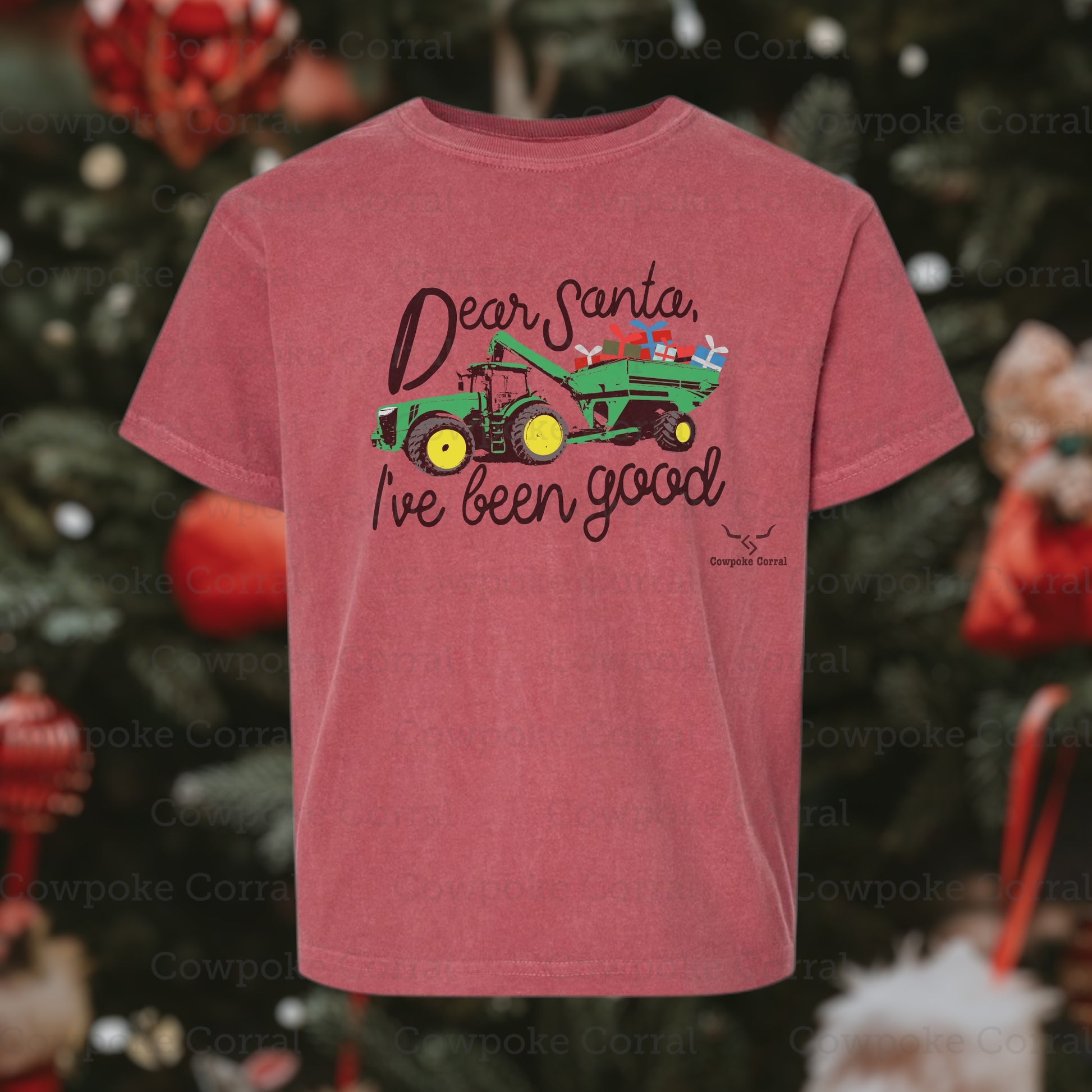 Get little farmers in the holiday spirit with this playful youth tractor tee, featuring "DEAR SANTA, I’VE BEEN GOOD." Perfect for kids who love tractors and Christmas, this comfy shirt adds a festive touch while celebrating their good behavior this year.