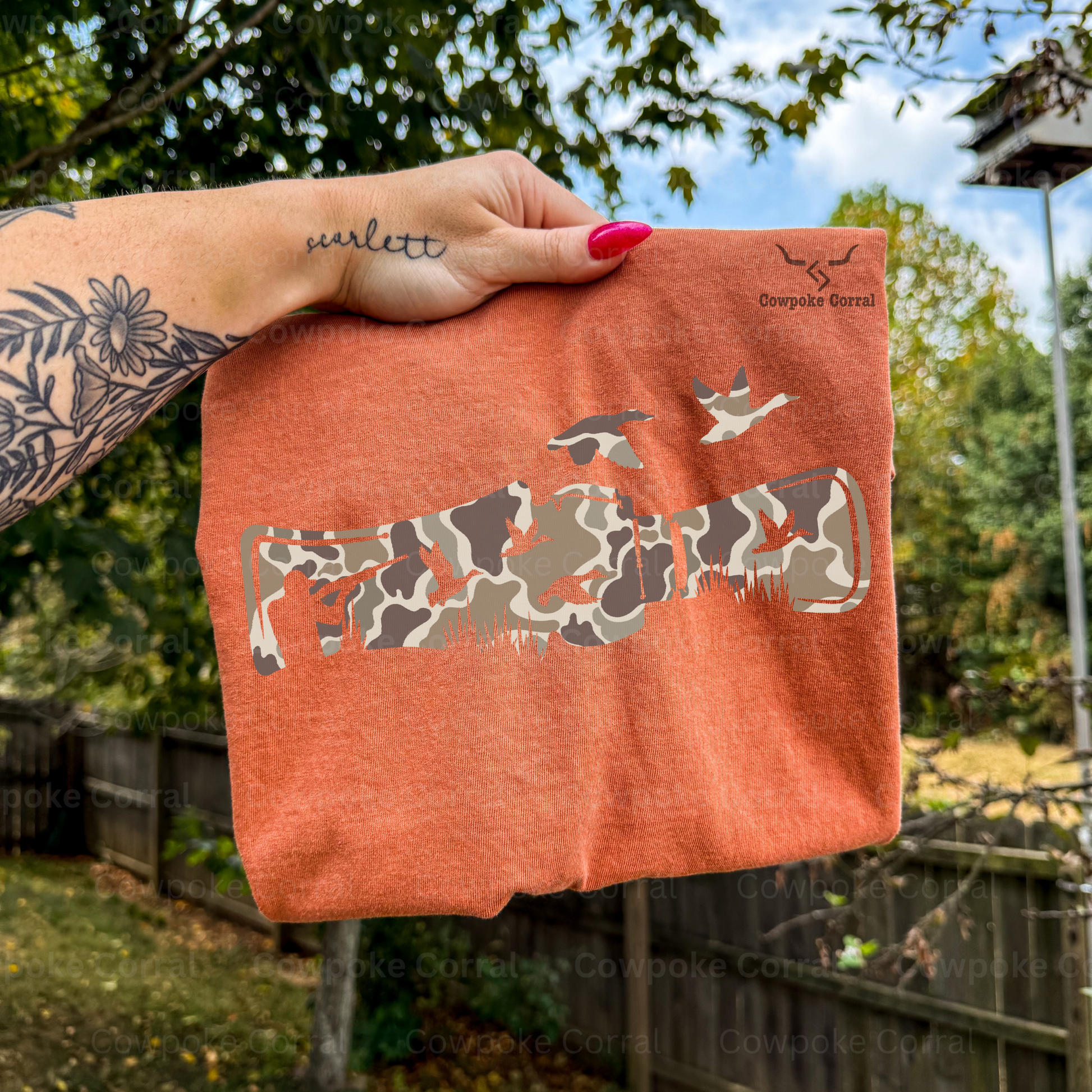 Get ready to blend in and stand out with the Duck Caller Retro Camo Tee! Rock that classic camo look with a playful twist, perfect for the outdoors or just hanging out. Whether you're calling ducks or just calling it casual, this tee brings retro vibes and comfy style to your everyday adventures.